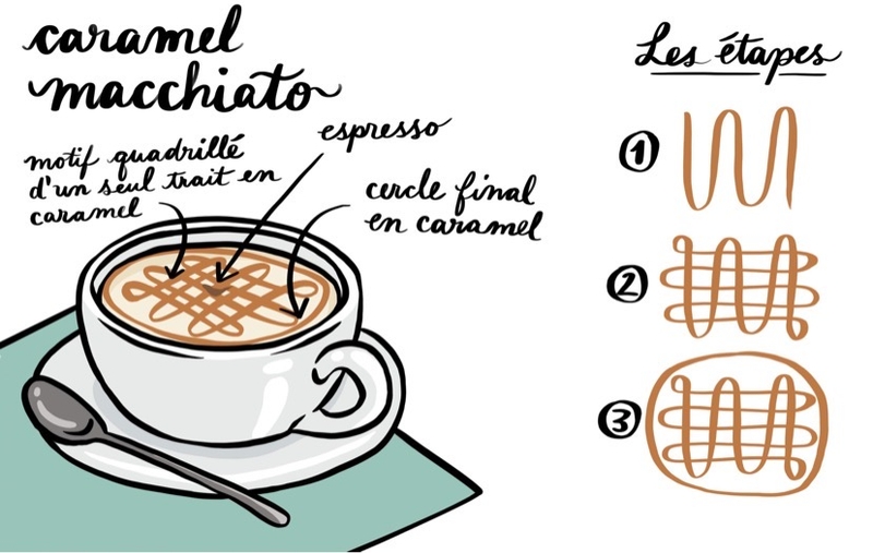 À base de sirop de vanille, le caramel macchiato n'a en fait de caramel que sur le dessus! Et macchiato, qu'est-ce que ça veut dire? C'est tout simplement le fait de faire couler l'espresso sur le lait moussé (ou froid, dans le cas d'une boisson glacée) plutôt que le contraire! C'est d'ailleurs ce qui confère le look «étagé» à ce type de cafés.